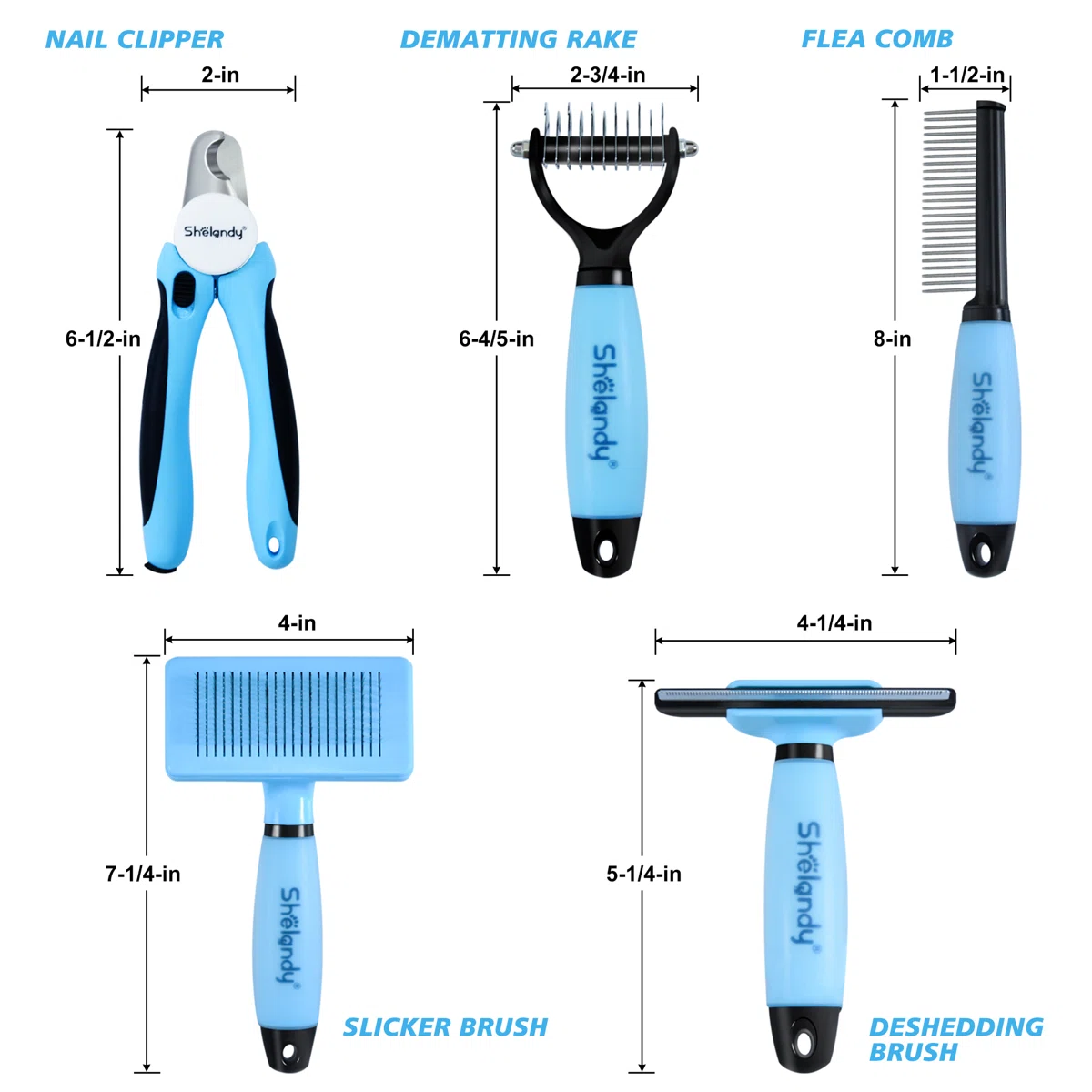 - VERSATILE TOOLS: Set includes slicker brush, undercoat rake, deshedding tool, flea comb, and precision nail clipper with safety guard